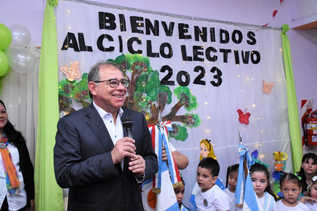 “Sabemos que el sistema educativo depende del Gobierno provincial y nosotros hacemos nuestro aporte coordinado con estos jardines que mantenemos”, dijo el intendente al encabezar, junto con el vicegobernador Braillard Poccard, el acto en el Centro de Desarrollo Infantil XI del barrio Virgen de los Dolores. En la ciudad funcionan 15 “Mitaí Roga” con una población escolar total de 2.000 niños, pero en breve se sumará el número 16, según confirmó el titular del Ejecutivo municipal.